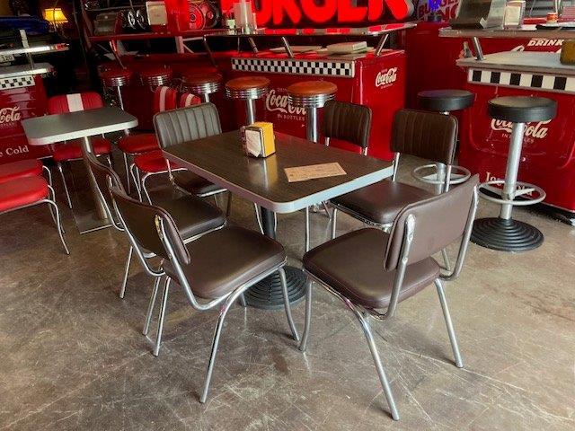 Diner Theke/Stehtisch mit schwarzen Barhockern
