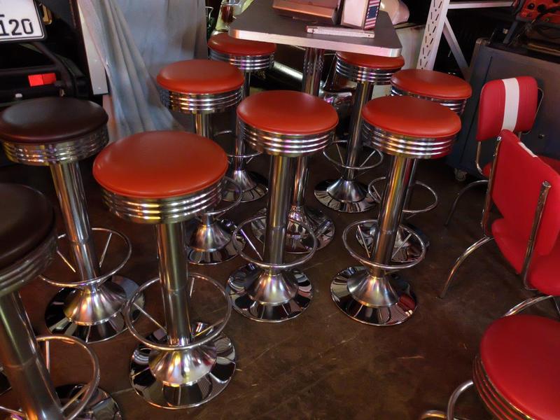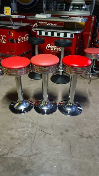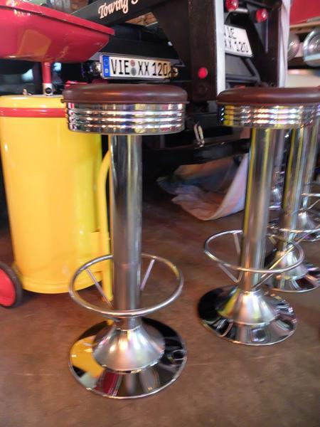 außerdem gehören 7 schwarze Metall Barhocker dazu (siehe Bilder)