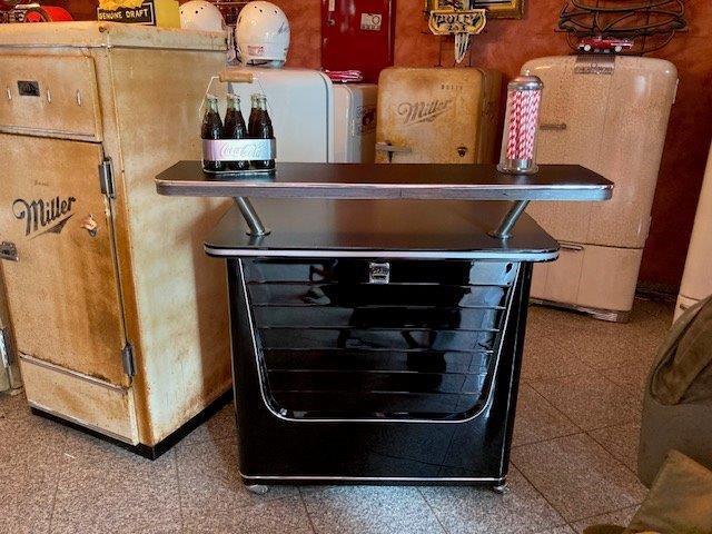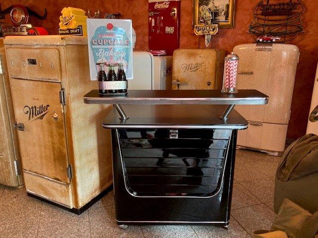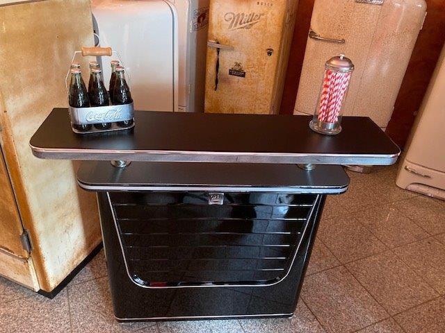 Tolle Dinertheke gebaut aus einer 50er Jahre Coca Cola Kühltruhe mit integriertem Kühlschrank