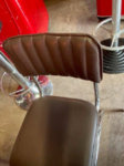 der Bezug ist aus braunem Kunstleder, Gestell aus Chromrohr