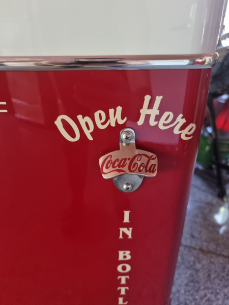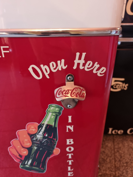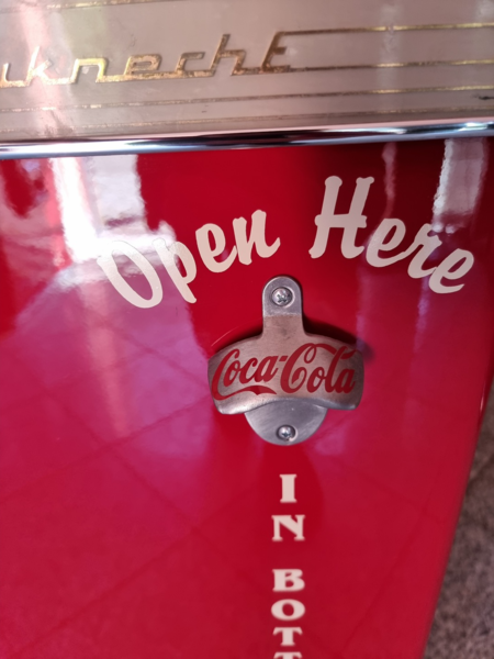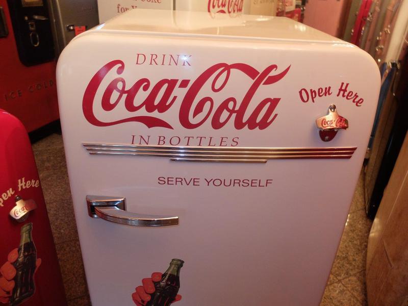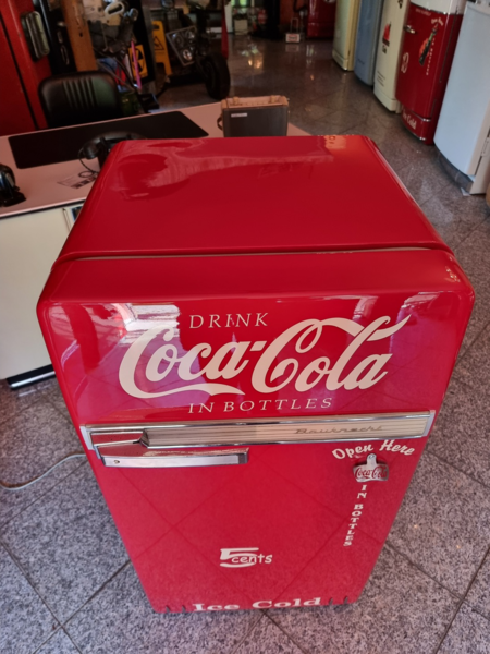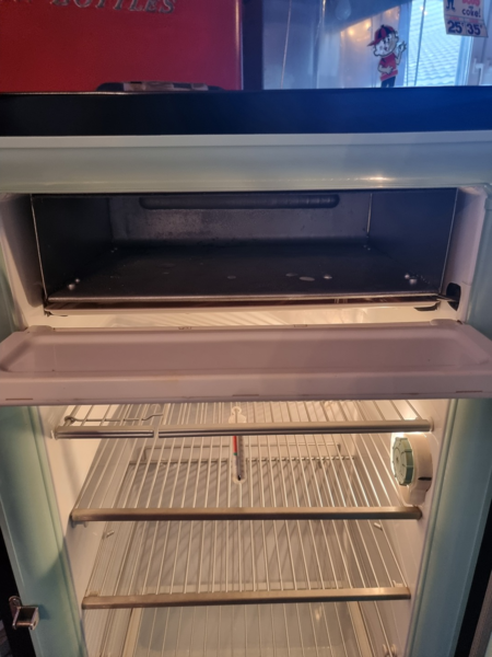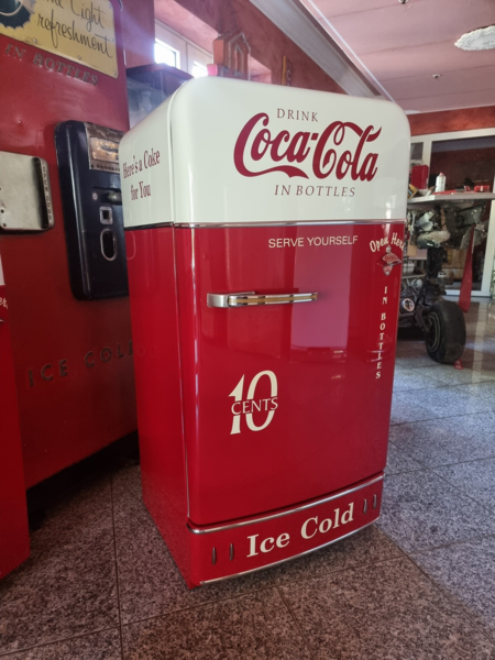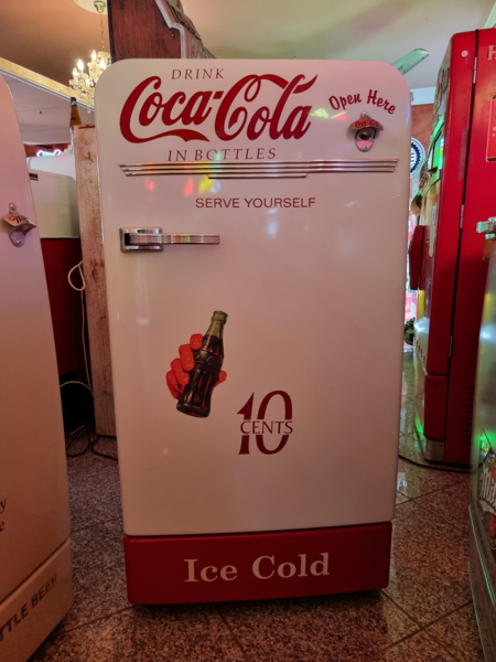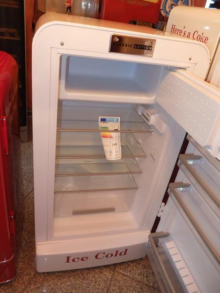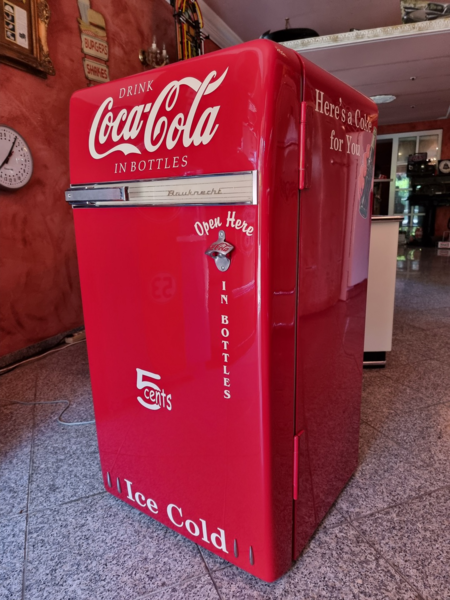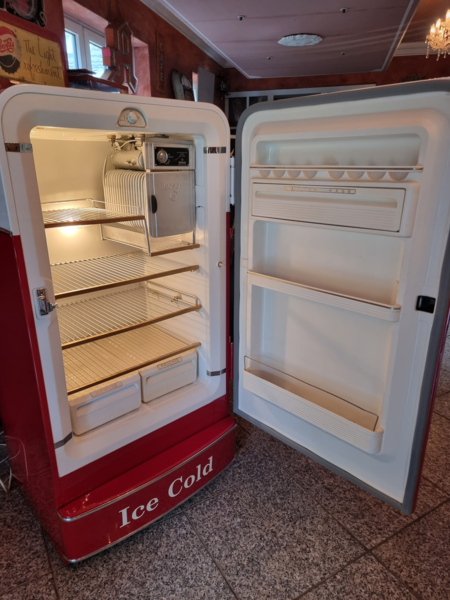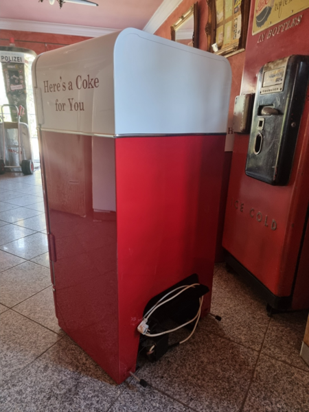 Frigidaire Kühltechnik. Der Automat ist funktionstüchtig, der Münzer ist überbrückt, so dass die Flaschen ohne Münzeinwurf entnommen werden können.