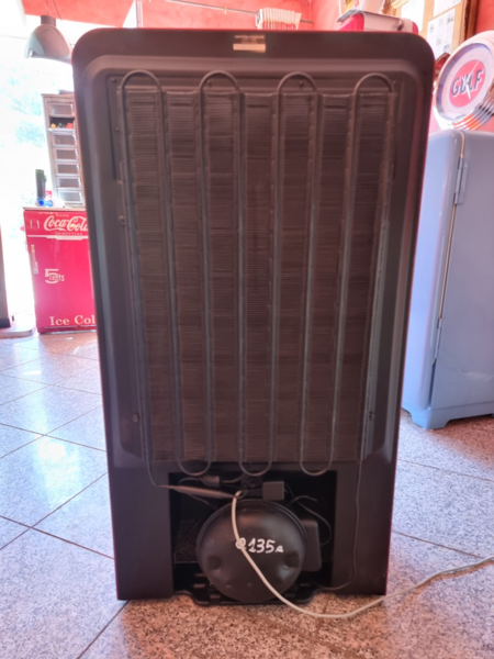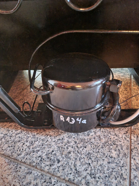 dieser Kühlschrank wurde umgebaut auf 230 Volt Technik, Kapselkompressor und Verdampfer wurden getauscht und das System FCKW frei befüllt