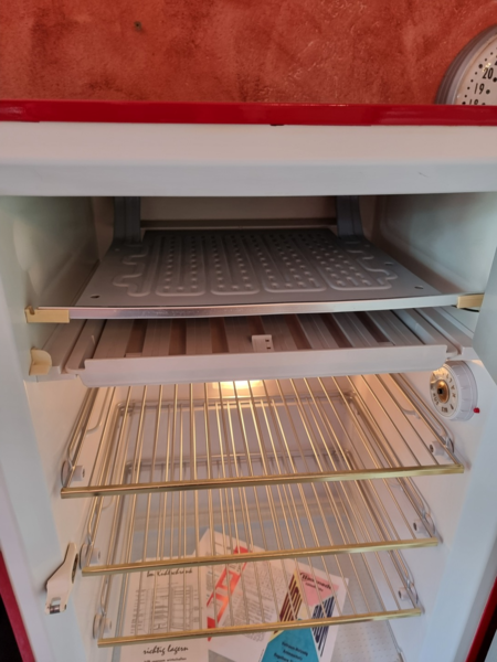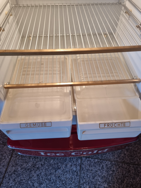 der Kühlschrank ist aus den 40er Jahren und komplett bestückt, alle Schalen und die komplette Innenausstattung ist original
