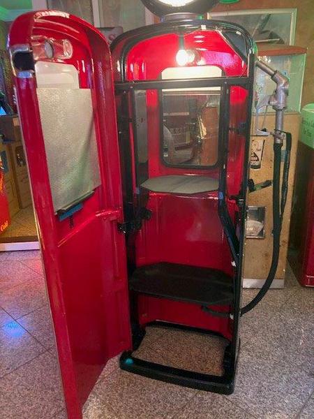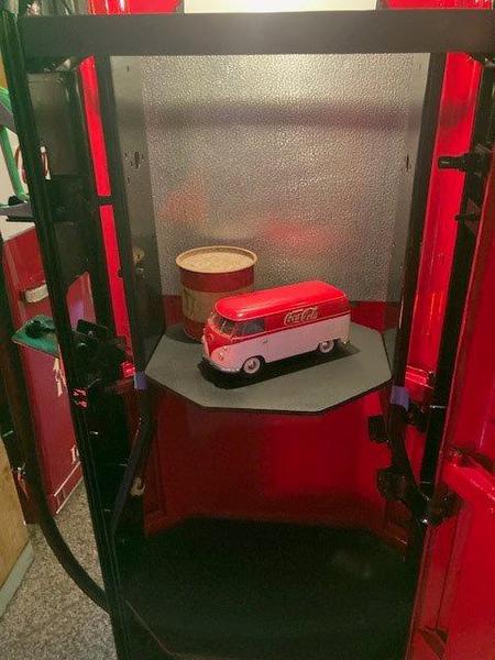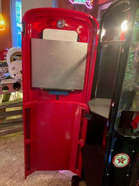 die Säule wurde von Ihrer Technik befreit und dient heute als Vitrine. auf der Vorderseite besticht sie durch eine schöne alte, originale Faceplate. im unteren Bereich wurde ein Emailleschild